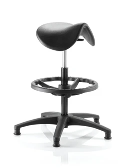 Draughtsman Saddle Seat – Soft PU, on glides with a gas-lift height adjustment and adjustable footring, and made with a soft polyurethane seat. Ideal seat for a variety of working environments including the lab, hospital, clinic, doctor’s surgery, or in science and research settings. The soft PU saddle seat is easy to wipe clean. Guarantee 5 years.