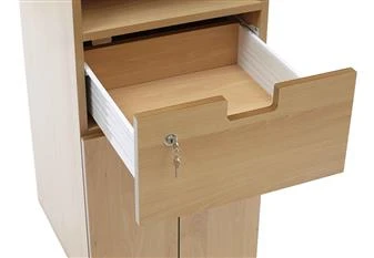 - Open Top Shelf, Lockable Middle Drawer, Lower Double Door Cupboard
