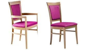 Juno Dining Chairs, with sturdy beech wooden frame and upholstered seat and back, available with or without arms. The chair comes in a range of anti-bacterial fabrics and vinyls and is suitable for use in dining areas in the care home, nursing home, or day-centre. The wooden frame comes in a choice of wood colour finishes and is coated with biocidal wood lacquer which kills most species of bacteria including MRSA, Salmonella, Corona Virus & E Coli. Manufacturer’s guarantee 5 years.