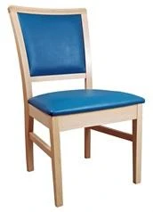 Maui Dining Chairs, with sturdy beech wooden frame and upholstered seat and back, available with or without arms. The chair comes in a range of anti-bacterial fabrics and vinyls and is suitable for use in dining areas in the care home, nursing home, or day-centre. The wooden frame comes in a choice of wood colour finishes and is coated with biocidal wood lacquer which kills most species of bacteria including MRSA, Salmonella, Corona Virus & E Coli. Manufacturer’s guarantee 5 years.