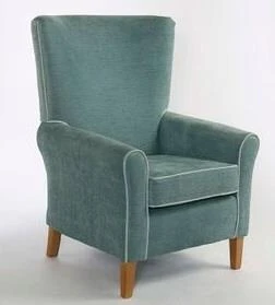 Ontario Queen Chair, suitable for use in the nursing home or care home and ideal in other healthcare environments such as hospices and housing associations. The Ontario Queen Chair features a unique curved back with integral wing. The design is to provide lateral support without making the user feel isolated as they can do in traditional wing chairs. Relevant in dementia care environments. The chair is available in a range of anti-microbial vinyls and fabric upholstery options. Vinyl upholstery is recommended for settings requiring quick wipe clean programmes, while fabric upholstery remains waterproofed and washable with a laminated backing, but will require a different cleaning regime. (For further details on the upholstery composition and cleaning please click the (i) on the tabs below.) Minimum Order 3 Chairs. (Contact the office for orders under minimum quantity).