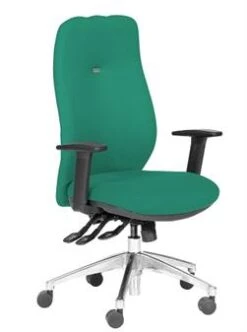 Plexus Mesh Back Operator Chair – with seat upholstered in a choice of antimicrobial vinyl colours, suitable for healthcare environments including hospital and clinical admin offices, receptions, etc. The firm padded seat is upholstered in a wipeaple vinyl of your choice, and the robust square design mesh back comes with built in lumbar support. The chair features a seat-tilt mechanism with weight tension control, and 3D adjustable arms (height, pivoting pad and forward/backward adjustments). With a black nylon spider base, and breathable mesh back, this chair is both functional and practical.